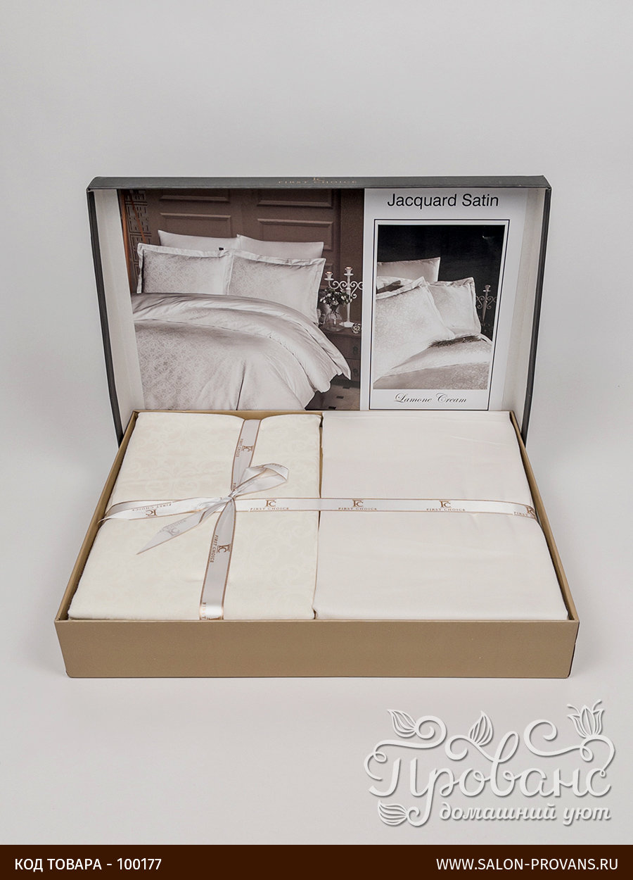 Постельное белье First Choice LAMONE хлопковый сатин-жаккард cream евро