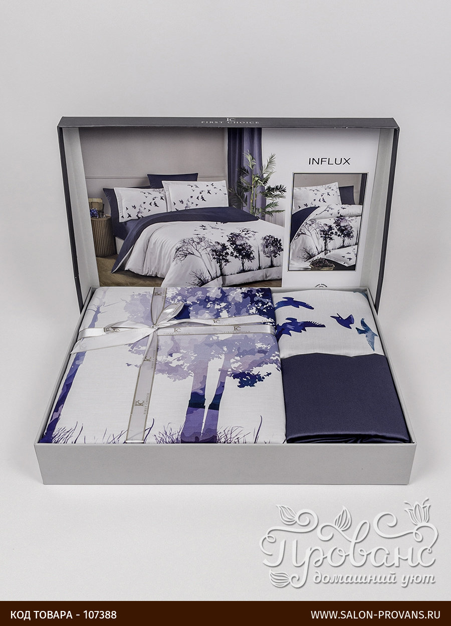 Постельное белье упаковано в фирменную подарочную картонную коробку.