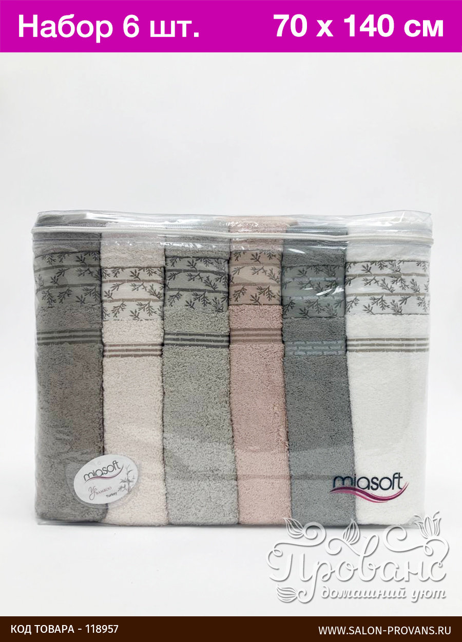 Набор полотенец для ванной 6 шт. Miasoft MISTY бамбуковая махра 70х140