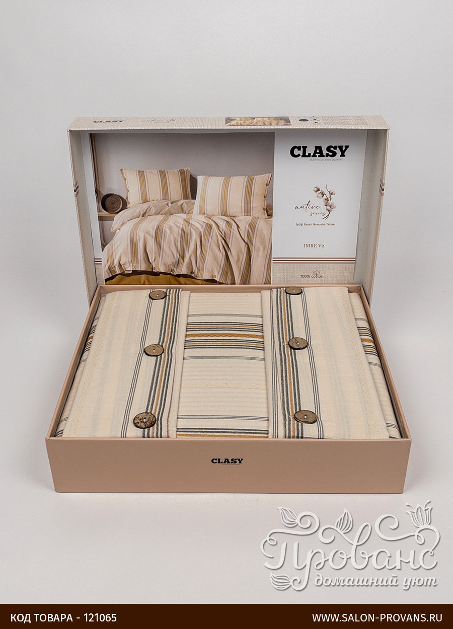 Бренд Clasy (Турция) Размер Евро Материал Ранфорс (100% хлопок) Плотность 115 г/м² Пододеяльники 200х220 см, на пуговицах (1 шт.) Простыни 240х260 см (1 шт.) Наволочки 50х70 см, с клапаном (2 шт.)