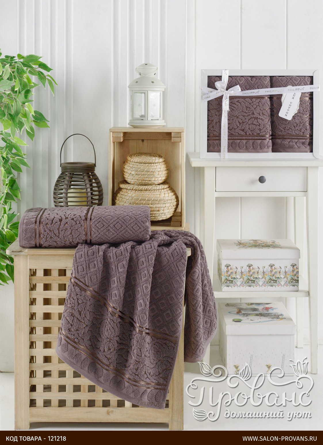 Подарочный набор полотенец для ванной 50х90, 70х140 Philippus MOTTYA хлопковая махра коричневый