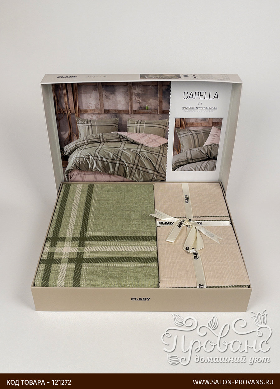 Верх: Сатин-жаккард (50% хлопок, 35% полиэстер, 15% вискоза) Плотность 210 ТС Пододеяльники 200х220 см (1 шт.) Простыни 240х260 см (1 шт.) Наволочки 50х70 см (4 шт.)