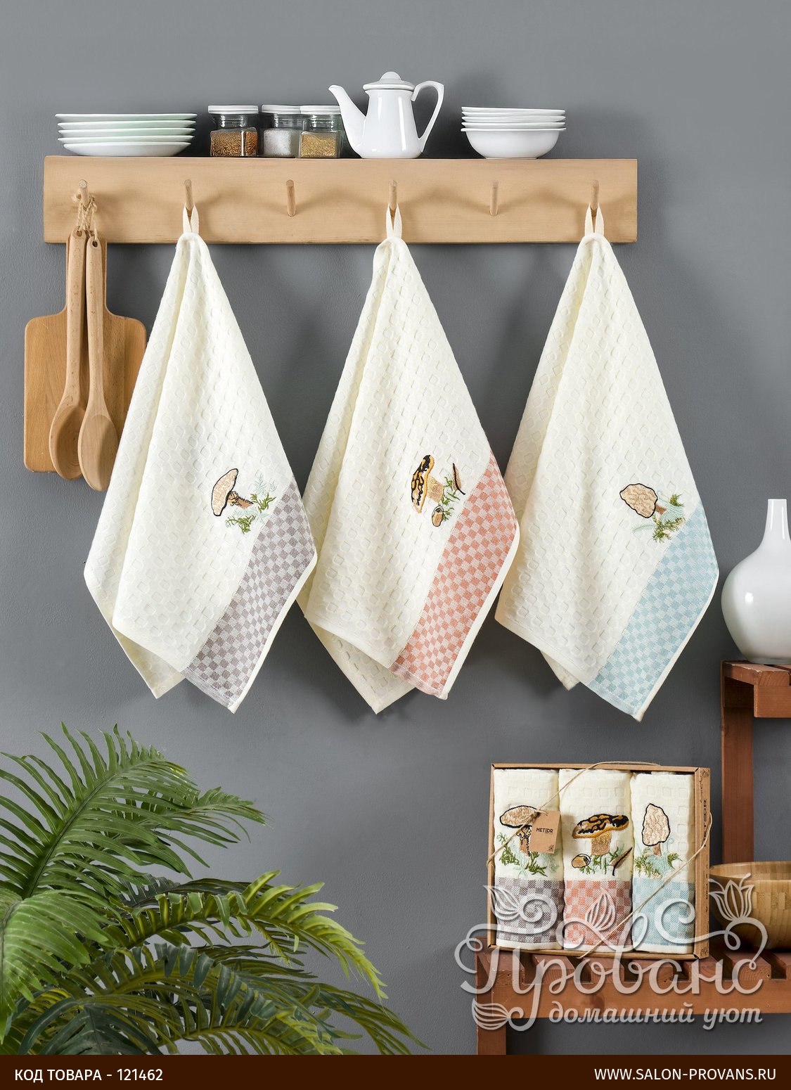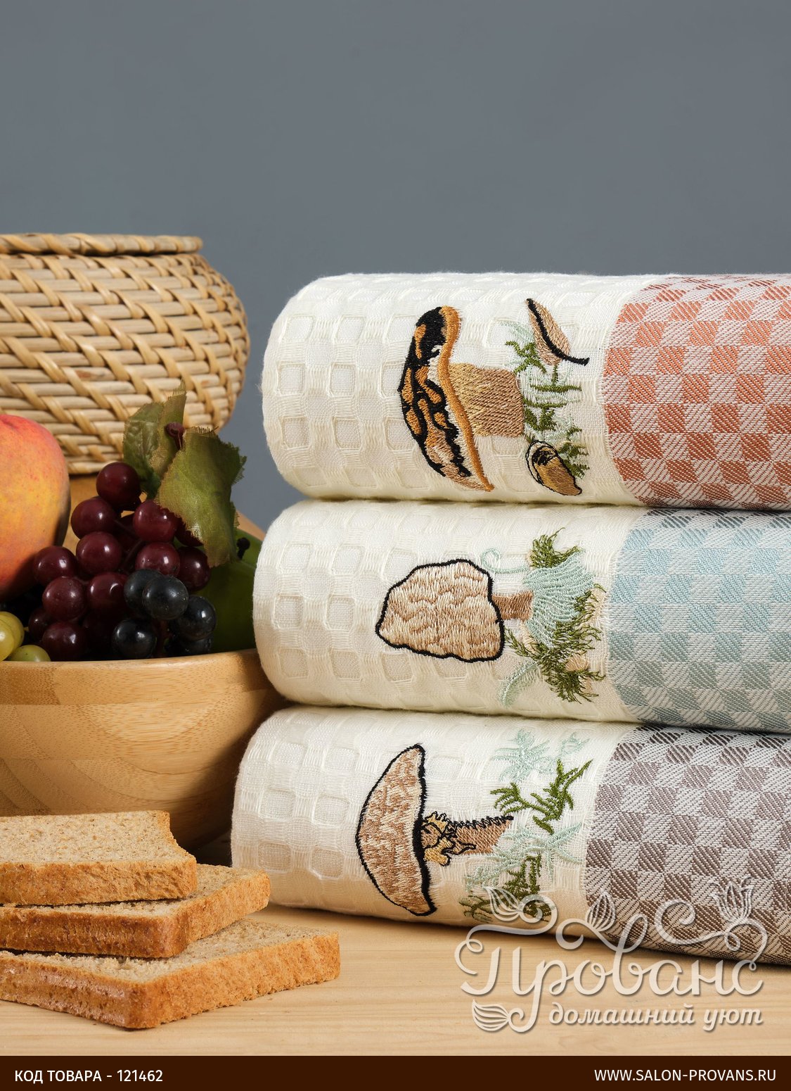 Подарочный набор полотенец для кухни 45х65(3) Meteor DAMA MUSHROOM хлопковая вафля