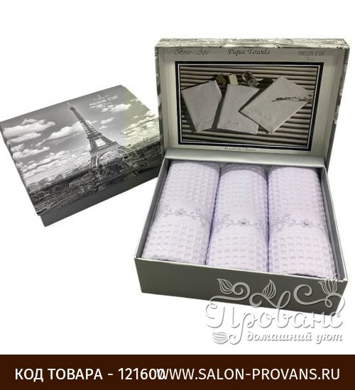 Подарочный набор кухонных полотенец 40х60(3) Maison Dor BRISE APE хлопковая вафля сиреневый
