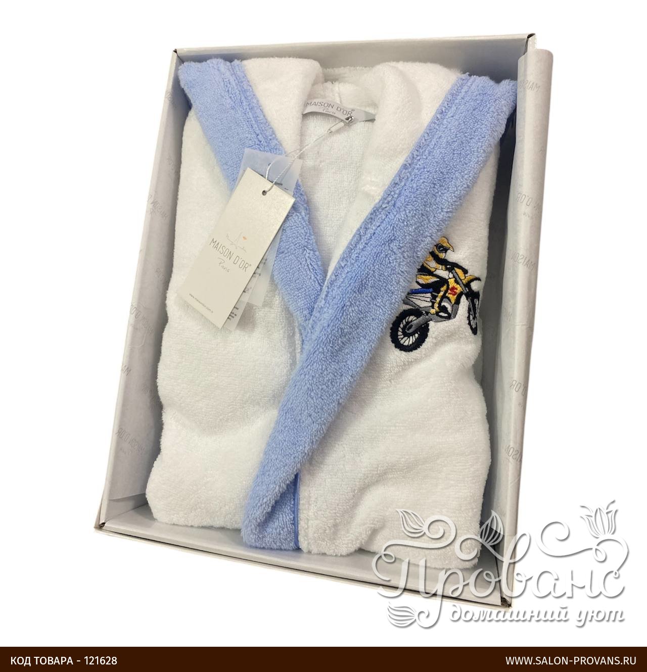 Халат детский Maison Dor STAR хлопковая махра белый+голубой 10 лет