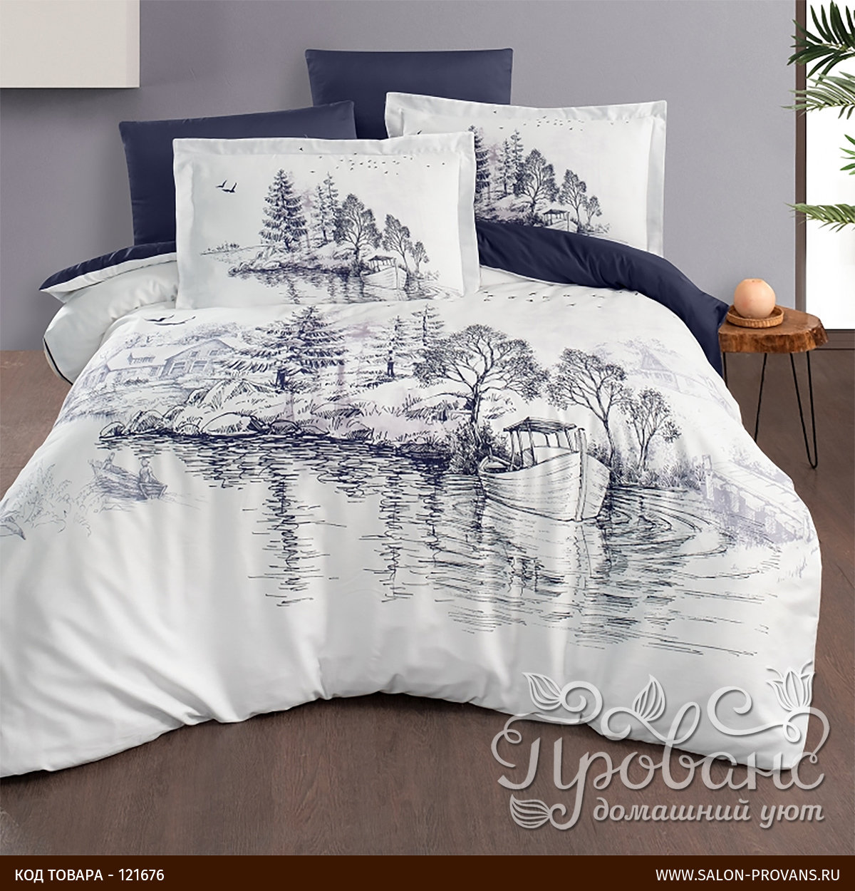 Постельное белье упаковано в фирменную подарочную картонную коробку.