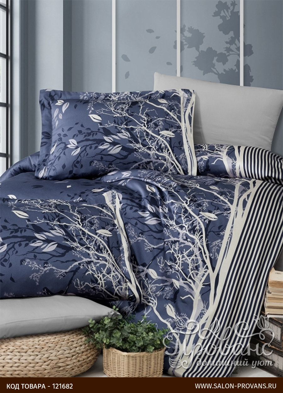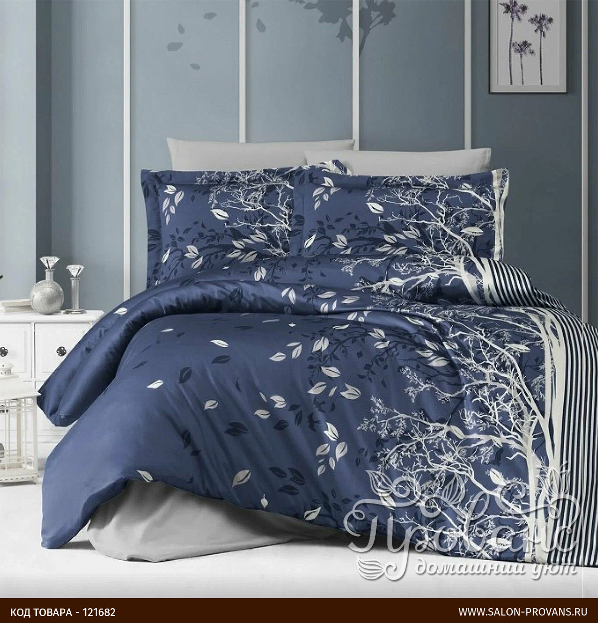 Постельное белье First Choice LIVING хлопковый сатин navy blue евро