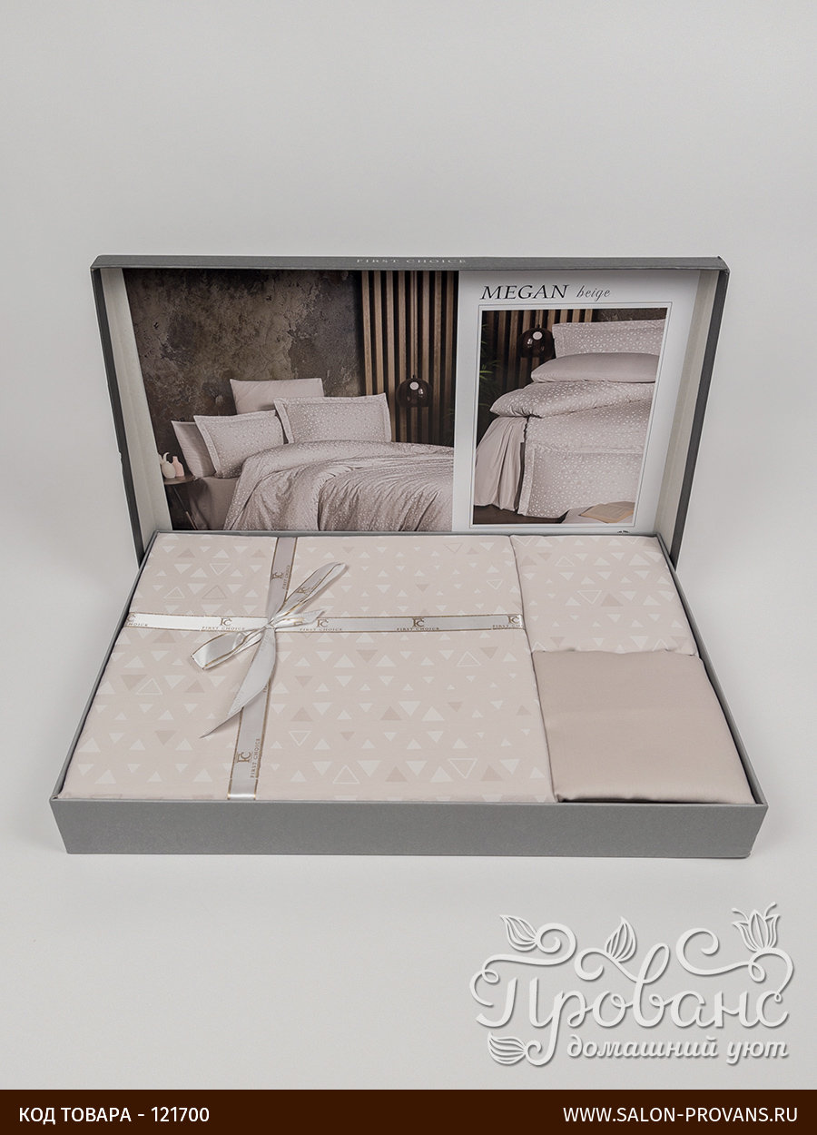 Постельное белье упаковано в фирменную подарочную картонную коробку.