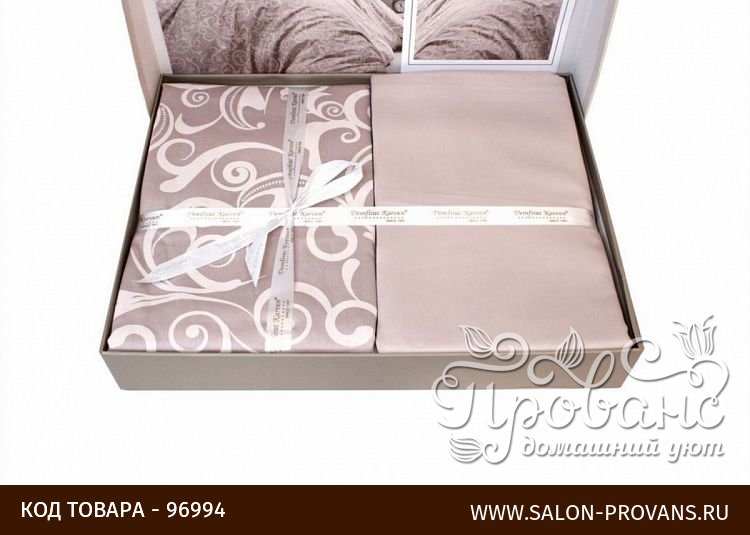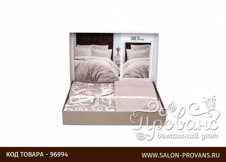 Постельное белье упаковано в фирменную подарочную картонную коробку.