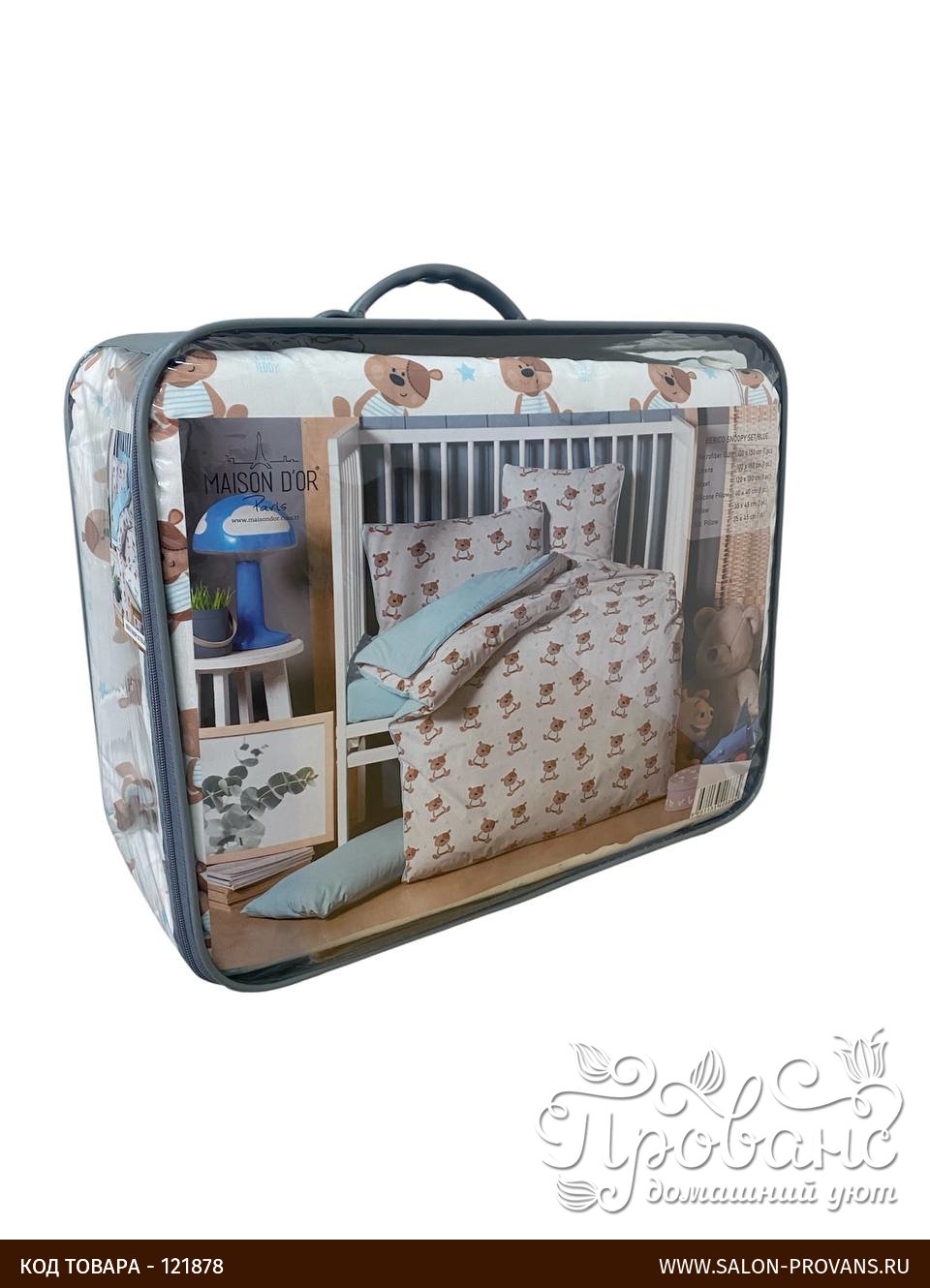 Детское постельное белье в кроватку с одеялом и подушкой Maison Dor BEBICO SNOOPY хлопковый сатин голубой