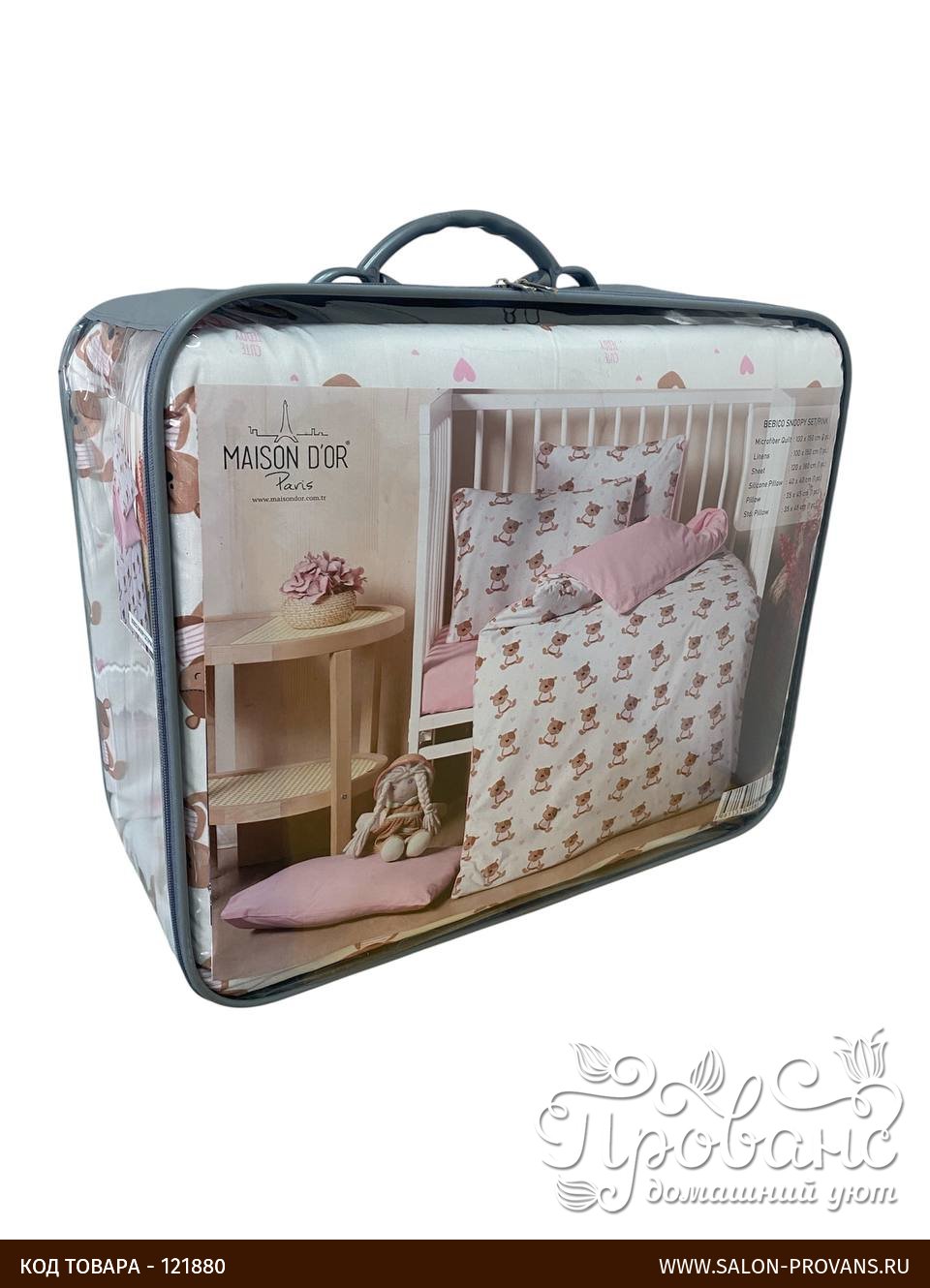 Детское постельное белье в кроватку с одеялом и подушкой Maison Dor BEBICO SNOOPY хлопковый сатин розовый