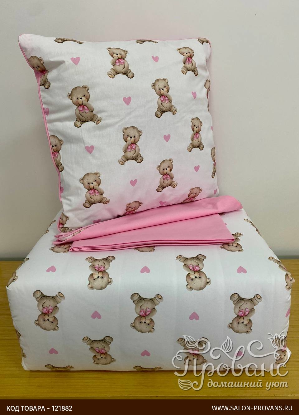 Детское постельное белье в кроватку с одеялом и подушкой Maison Dor BEBICO TOMMY хлопковый сатин розовый