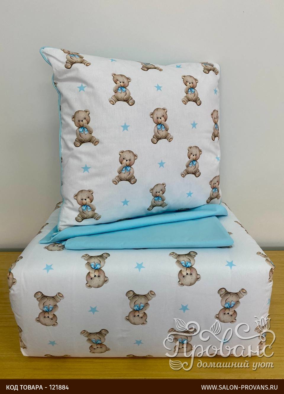 Детское постельное белье в кроватку с одеялом и подушкой Maison Dor BEBICO TOMMY хлопковый сатин голубой