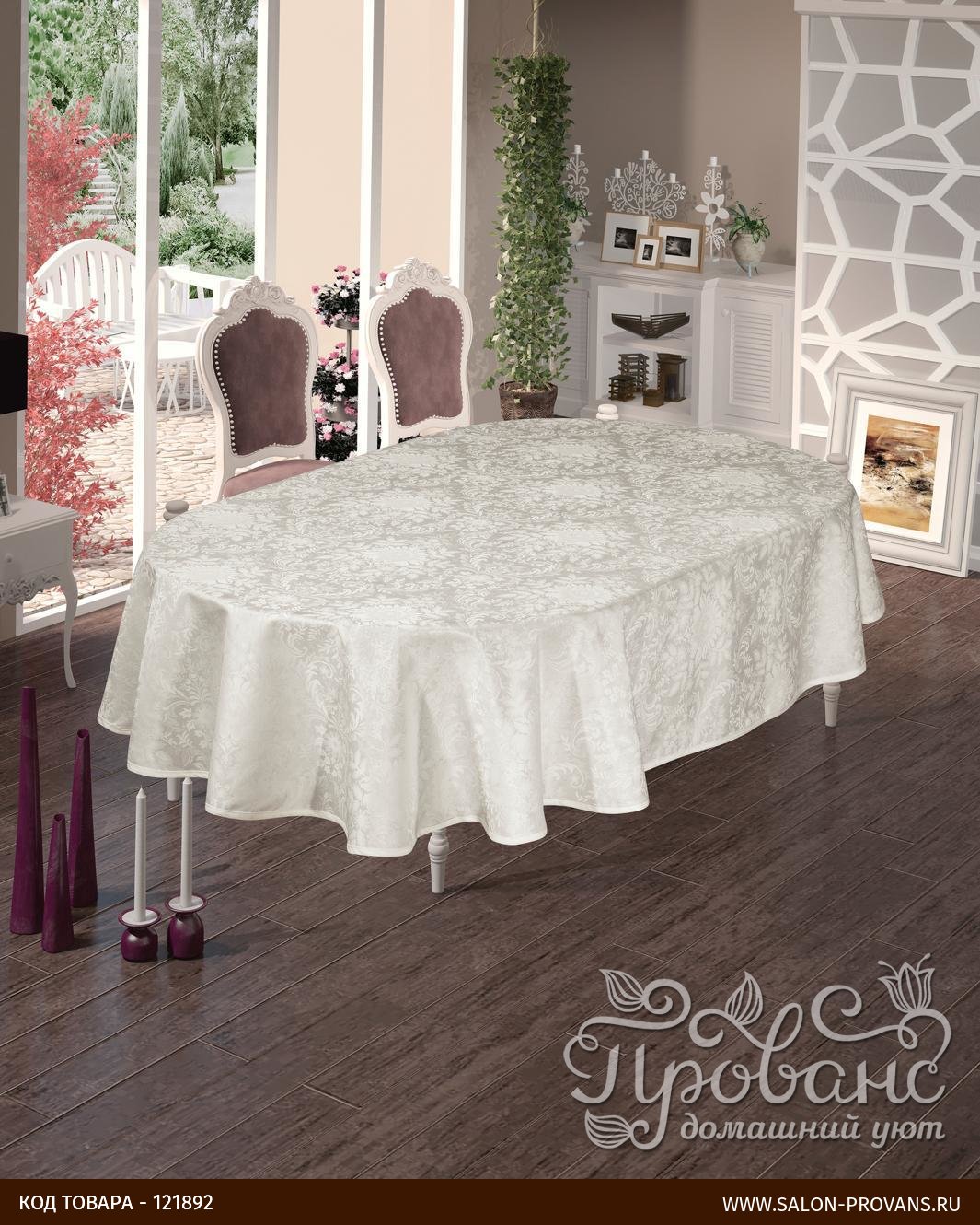 Скатерть овальная DO&CO BEGONYA жаккард кремовый 160х220