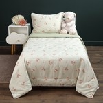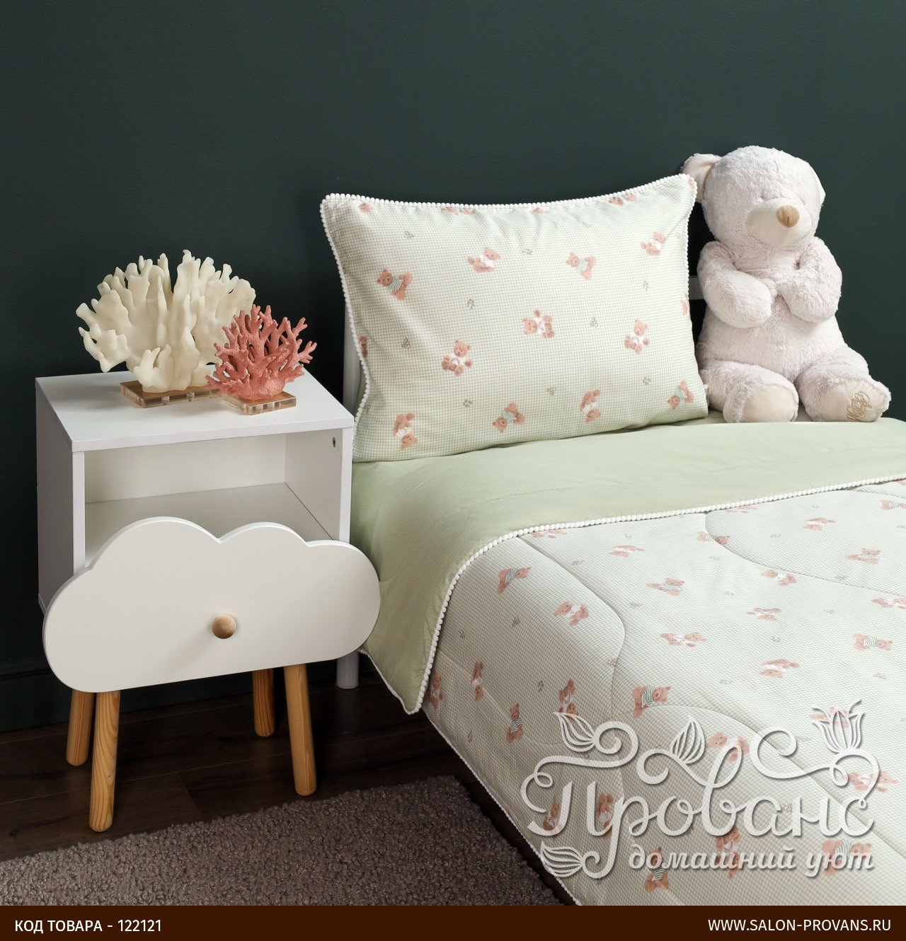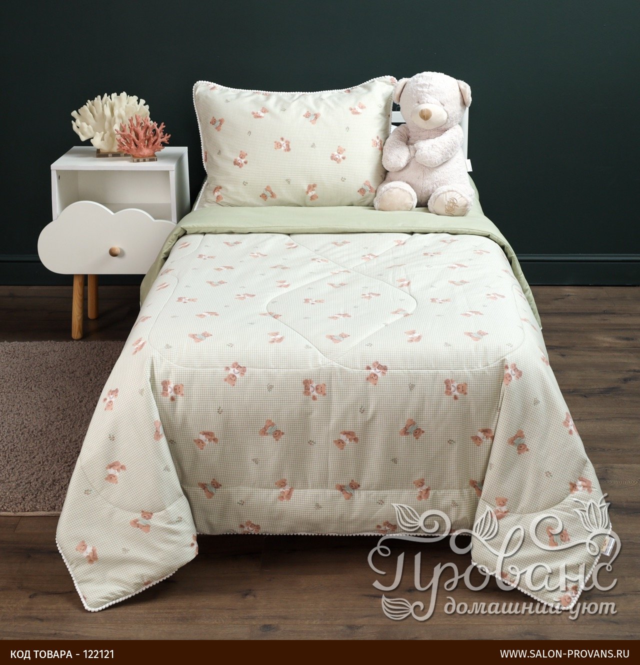 Детское постельное белье без пододеяльника с одеялом Sofi De Marko ПАДДИНГТОН хлопковый сатин светло-зелёный 1,5 спальный
