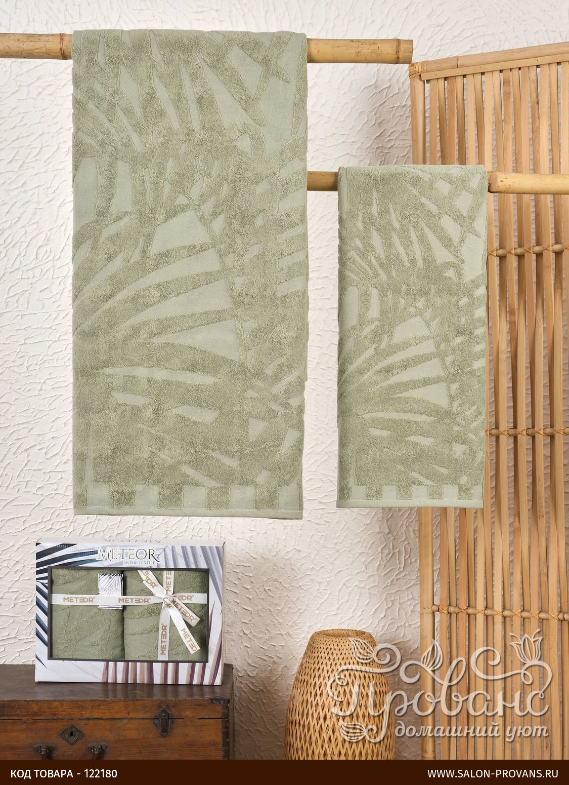Подарочный набор полотенец для ванной 50х90, 70х140 Meteor PATAYA хлопковая махра фисташковый