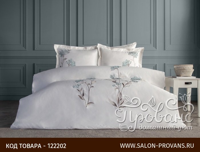 - Пододеяльник и две наволочки украшены изящной вышивкой.