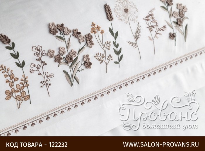- Пододеяльник и две наволочки украшены изящной вышивкой.
