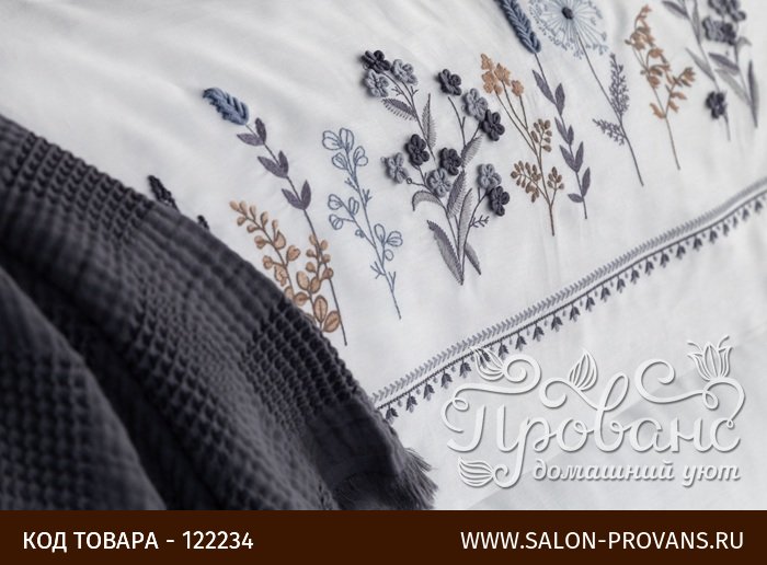 - Пододеяльник и две наволочки украшены изящной вышивкой.