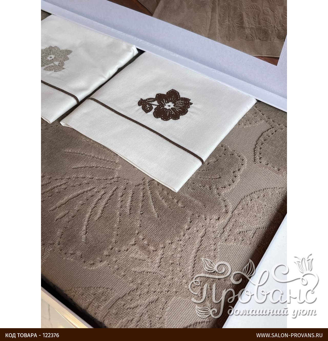 Постельное белье без пододеяльника с покрывалом Tivolyo Home MONSTERA хлопок коричневый евро