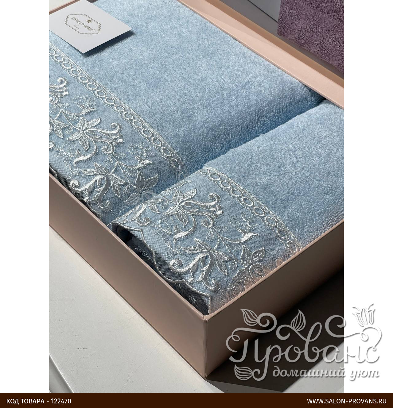 Подарочный набор полотенец для ванной 2 пр. Tivolyo Home BLANCO хлопковая махра голубой