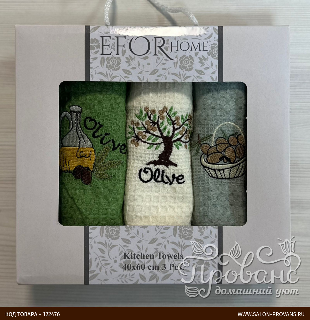 Подарочный набор кухонных полотенец 40х60(3) Efor HOME хлопковая вафля оливки