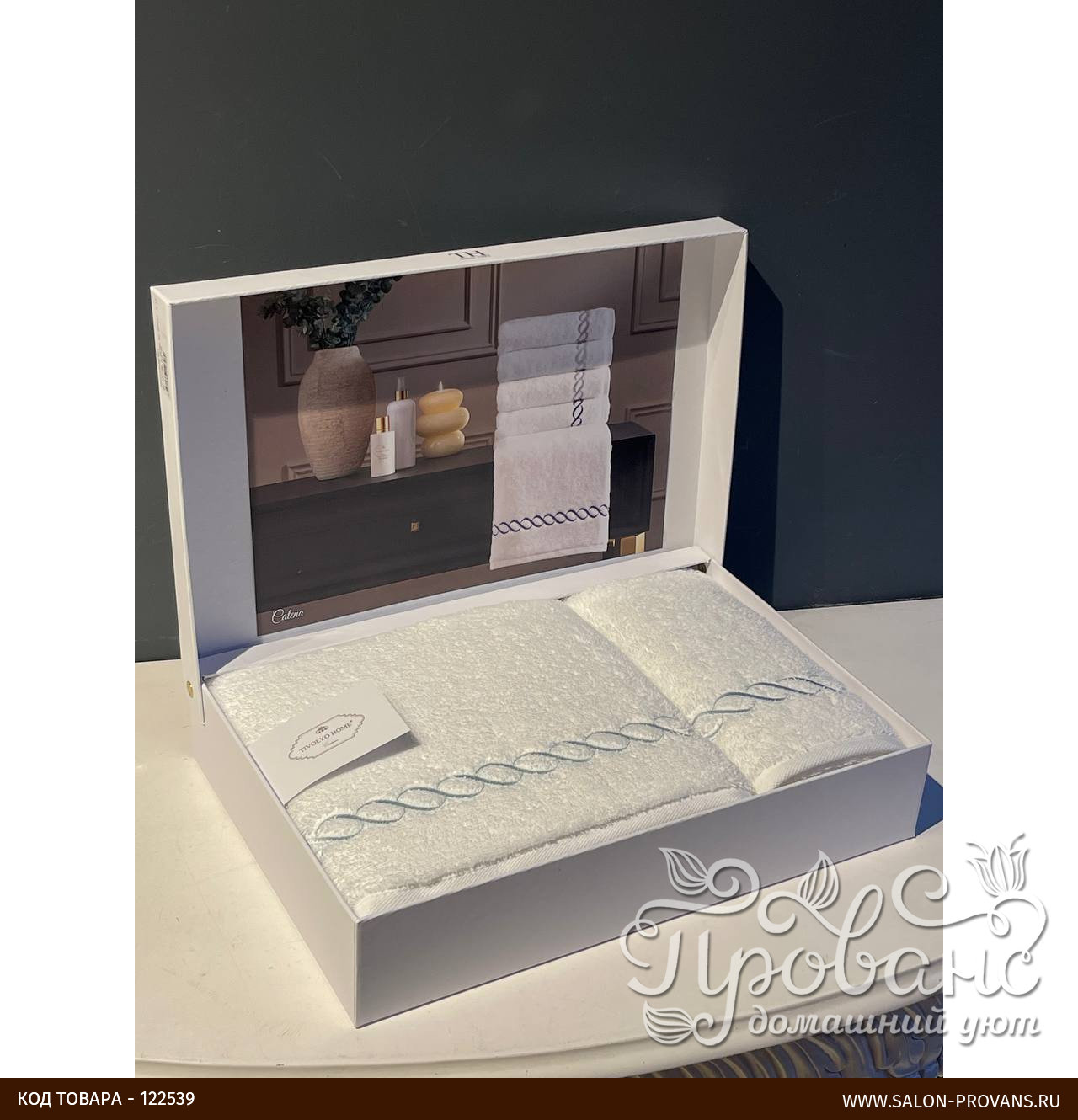 Полотенца упакованы в фирменную подарочную картонную коробку.