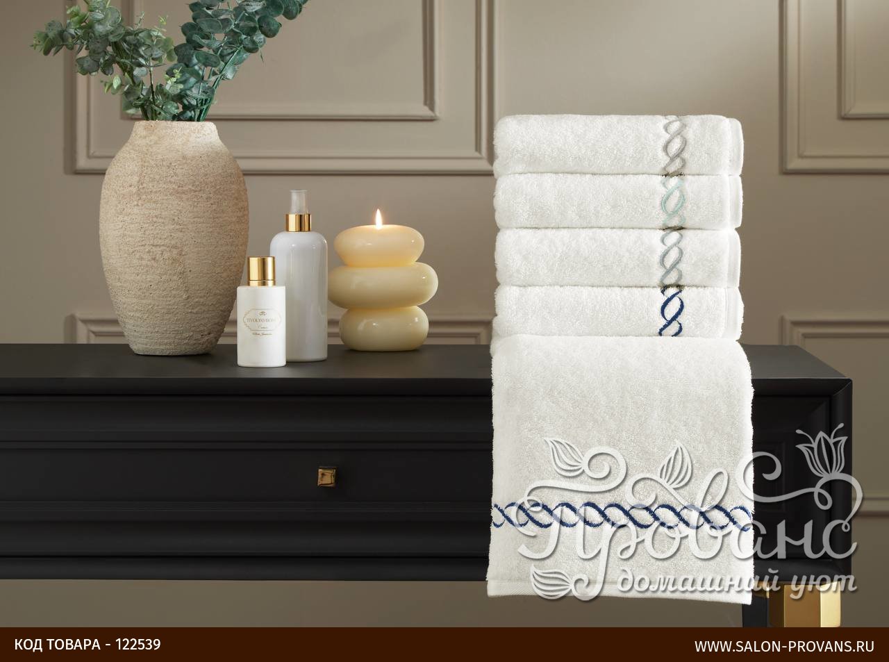 - Полотенца украшены изящной вышивкой.