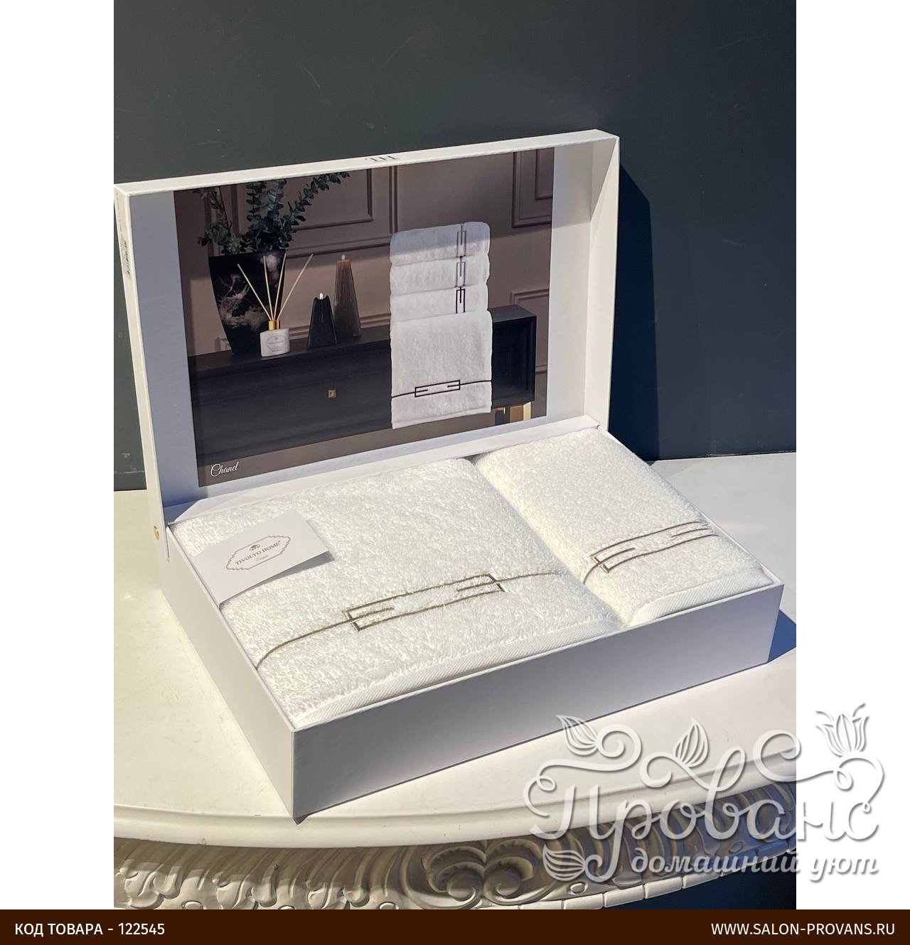 Подарочный набор для ванной из двух полотенец из коллекции CHANEL от турецкого бренда Tivolyo home.