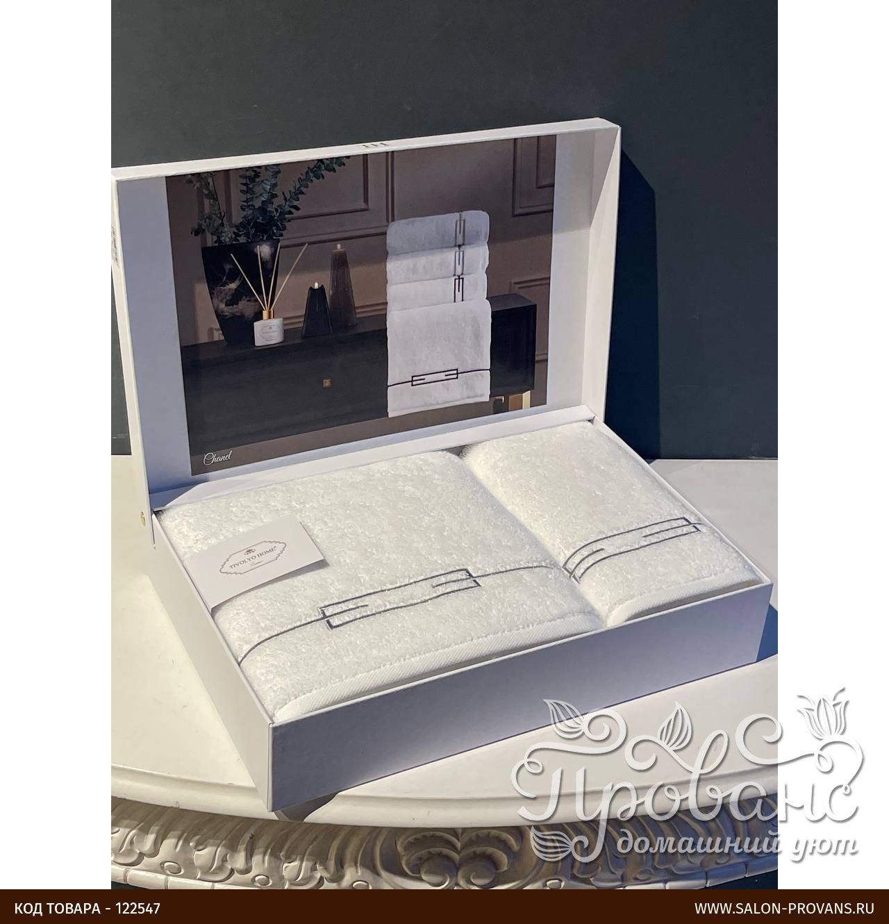 Полотенца упакованы в фирменную подарочную картонную коробку.