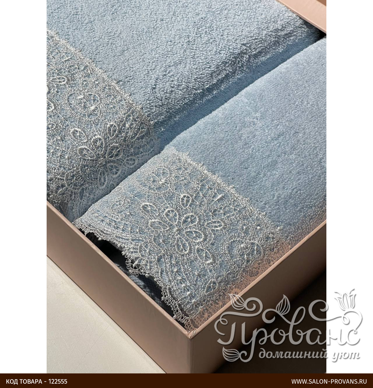 Подарочный набор полотенец для ванной 2 пр. Tivolyo Home PEROLA хлопковая махра голубой