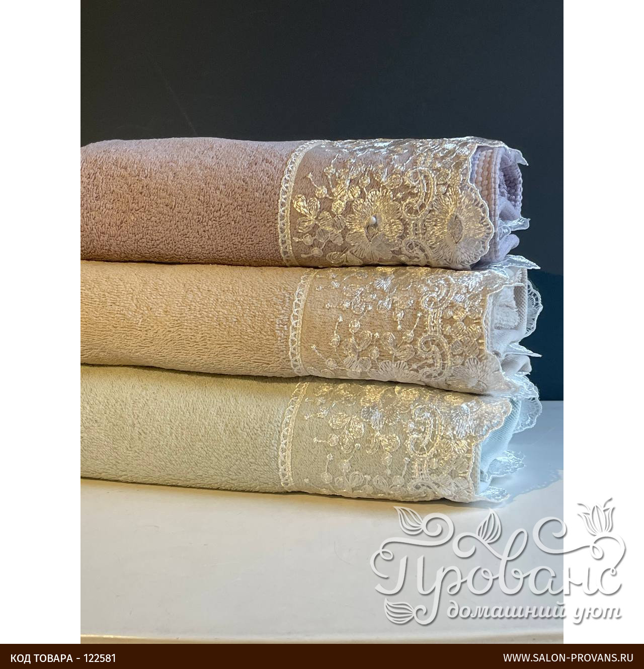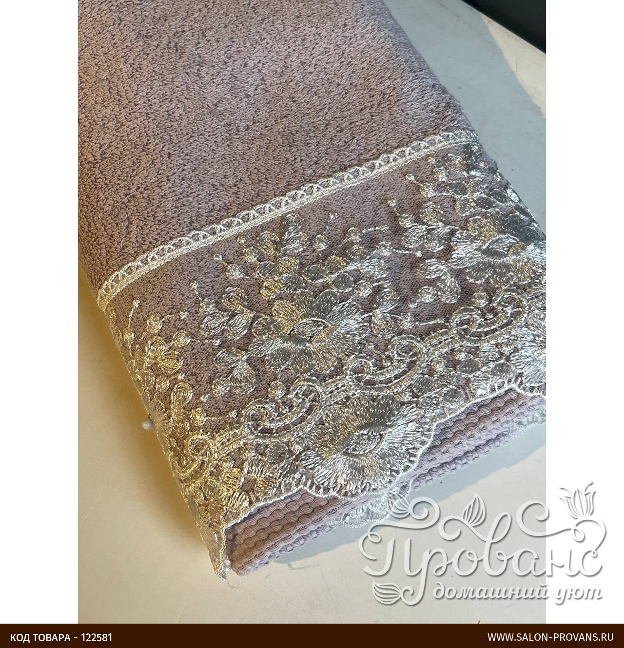 - Украшено широким декоративным бордюром с гипюром.