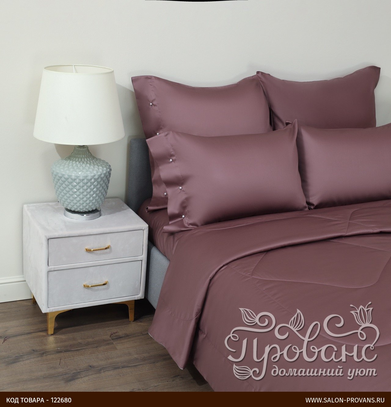 Постельное белье без пододеяльника с одеялом Sofi De Marko PREMIUM MAKO хлопковый сатин пурпурно-дымчатый евро