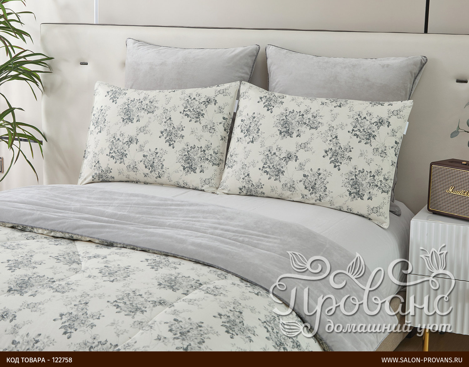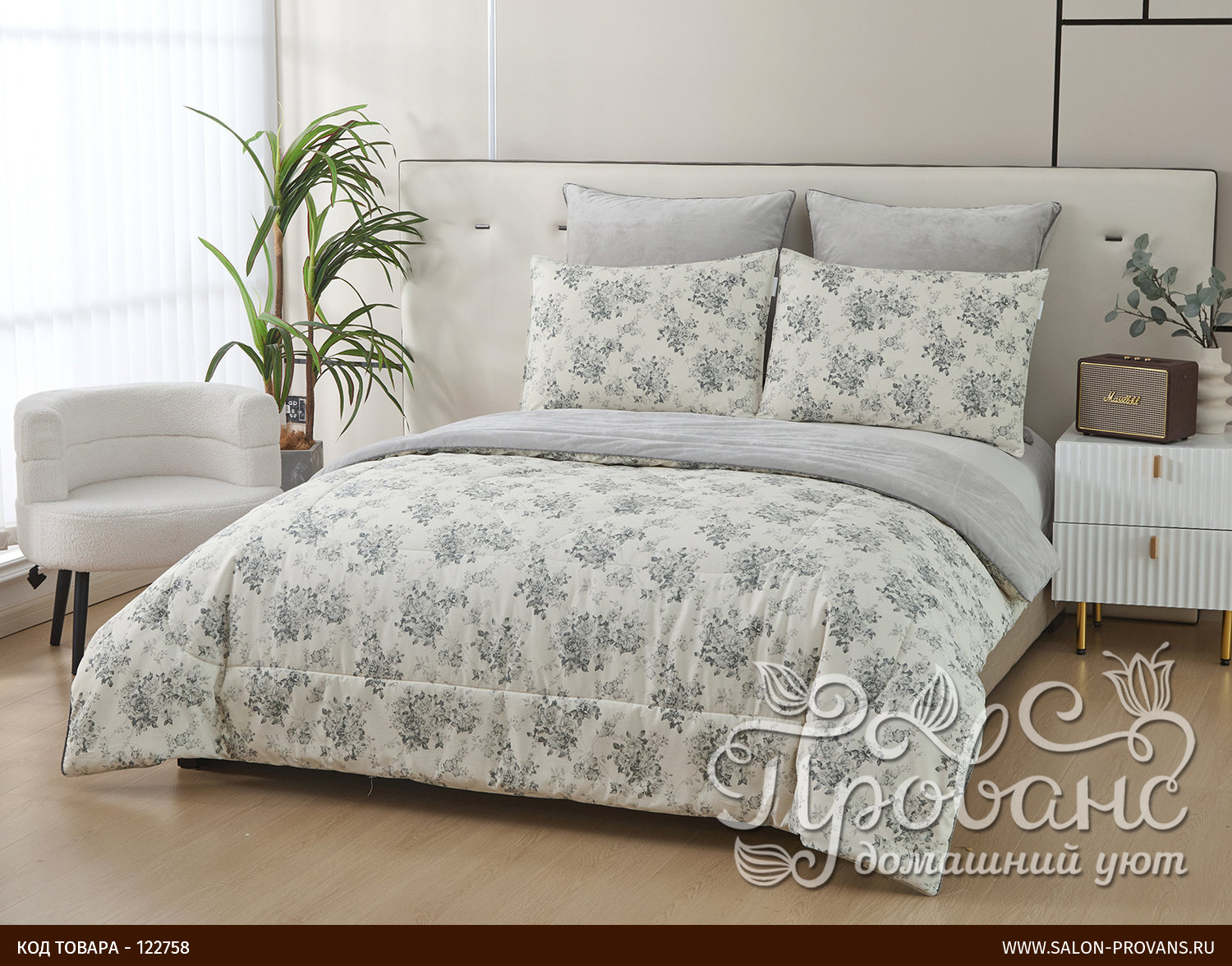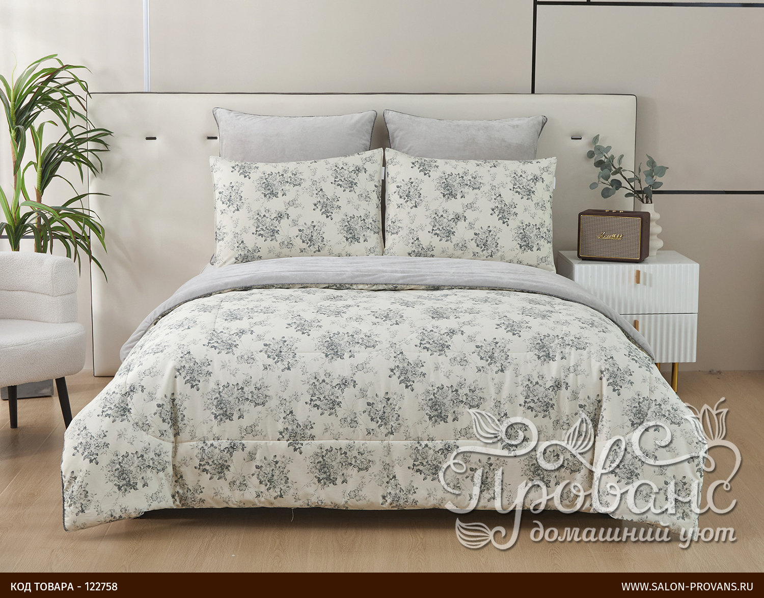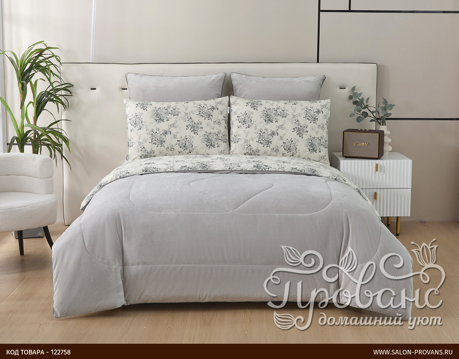 Постельное белье без пододеяльника с одеялом Sofi De Marko ФЕДЕРИКО хлопковый сатин серый евро