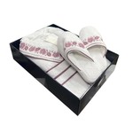 Женский халат с тапочками из коллекции ROSANNA от турецкого бренда Maison Dor, изготовленный из высококачественного хлопка, украшенного вышивкой из роз.