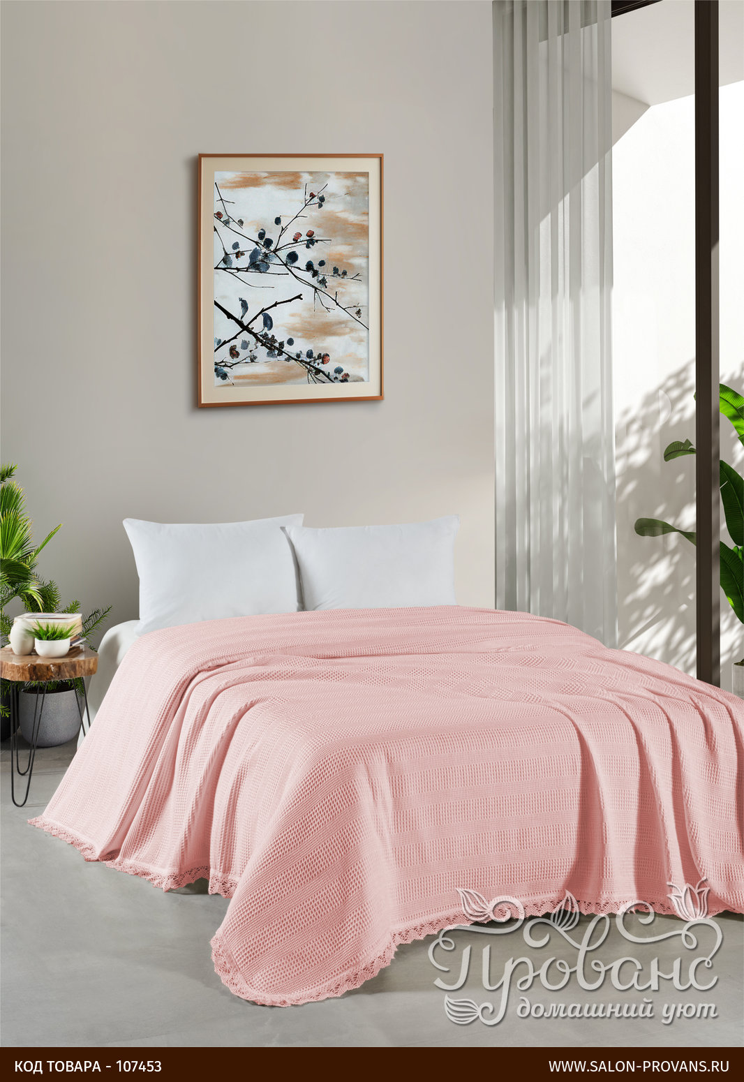 Вафельная простыня-покрывало для укрывания (пике) DO&CO PETEK хлопок розовый 160х220