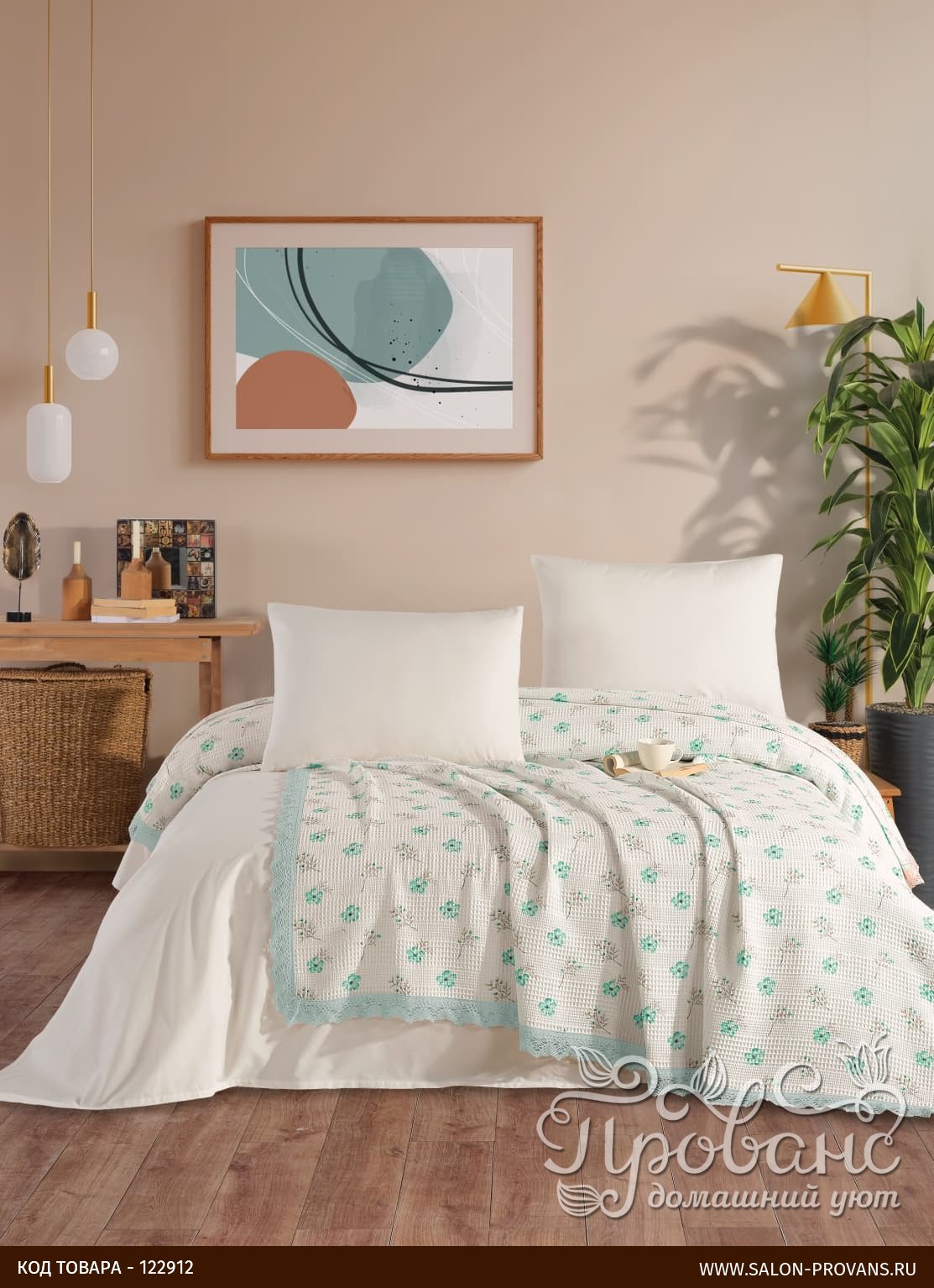 Вафельная однотонная простынь-покрывало TUL от известного премиального турецкого бренда DO&CO. Может использоваться как покрывало и как лёгкое летнее одеяло. Изготовленая из 100% хлопка, мягкая и приятная на ощупь, украшенная легким гипюром и милыми цветами. Упаковка — ПВХ