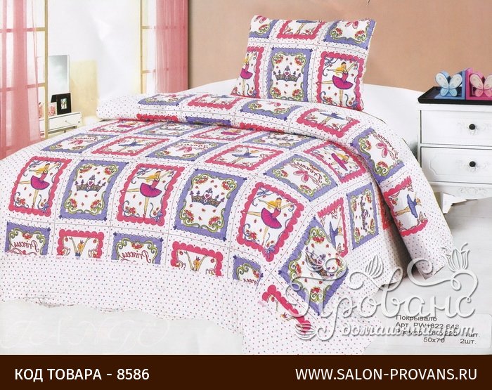 Покрывало пэчворк с танцующими принцессами непременно понравится любой юной моднице. Очаровательное белье из сатина отличается особенным девичьим мотивом, который близок каждой девочке. Расположенные в симметричном порядке, квадраты представляют собой особые затейливые рамки-виньетки, в которых чередуются изображение танцующей девушки и ее аксессуары. Розовые и нежно-фиолетовые оттенки отлично подойдут для нежной и милой девичьей спальни. Основной фон комплекта - мелкий цветной горошек. Фон набора домашнего текстиля и его декор замечательно комбинируются и делают спальню девочки яркой, модной и оригинальной.