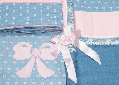Постельное белье из сатина с вышивкой в стиле прованс замечательно будет смотреться как в загородном доме, так и в типовой квартире. Основной мотив дизайна - визуализации простого, но крайне изысканного стиля прованс в интерьере спальни. Центральное место занимает кокетливый голубой квадрат с рисунком и широкой каймой розового цвета. Мелкие детали в виде очаровательных бантиков и цветочков из лент придают комплекту легкость и женственность. Каждая деталь декора олицетворяет душевный покой и умиротворение.