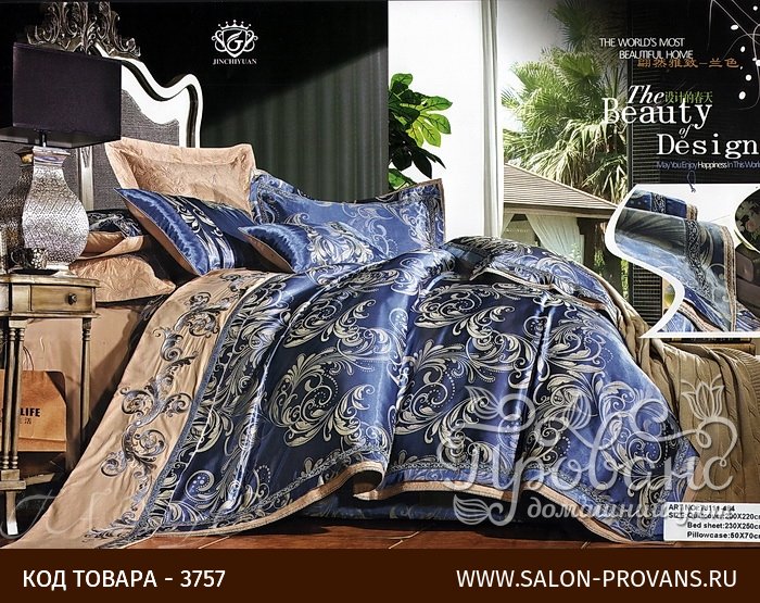 Синее постельное белье имеет цвет ночного неба, спокойного, умиротворяющего, которым можно любоваться бесконечно. Этот глубокий чувственный оттенок успешно подчеркивается золотыми рисунками – растительными мотивами, сплетенными в изящную и невероятно нежную композицию. Гирлянды трав и цветов, выполненные в абстрактной манере, поселят в спальне ощущение настоящего праздника.