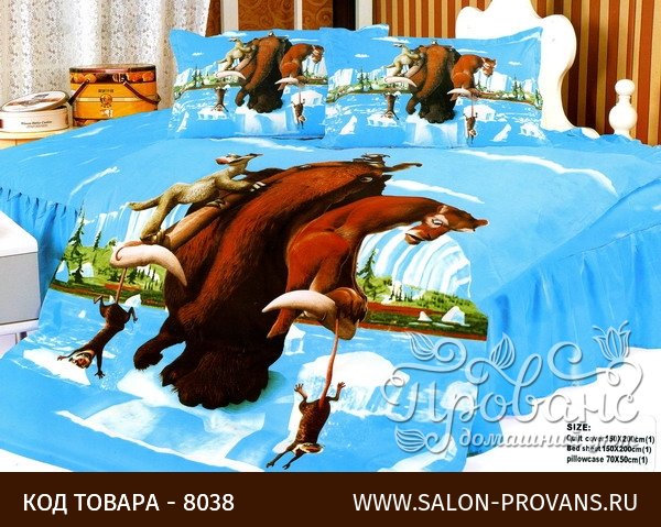 Как хорошо в летний жаркий день очутиться на прохладном и свежем... осколке льдины. А поможет нам в этом новый комплект детского постельного белья с героями мультфильма "Ледниковый период". Вечно угрюмый мамонт Мэнни, неуклюжий ленивец Сид, независимый и гордый саблезубый тигр Диего, маленький, но упорный самец саблезубой белки Скрэт и два хулигана-опоссума Крэш и Эдии готовы к новым приключениям, героем которых может стать и ваш малыш. Набор постельных принадлежностей ярко-голубого цвета создаст сказочное настроение в интерьере и визуально сделает его просторнее и светлее.