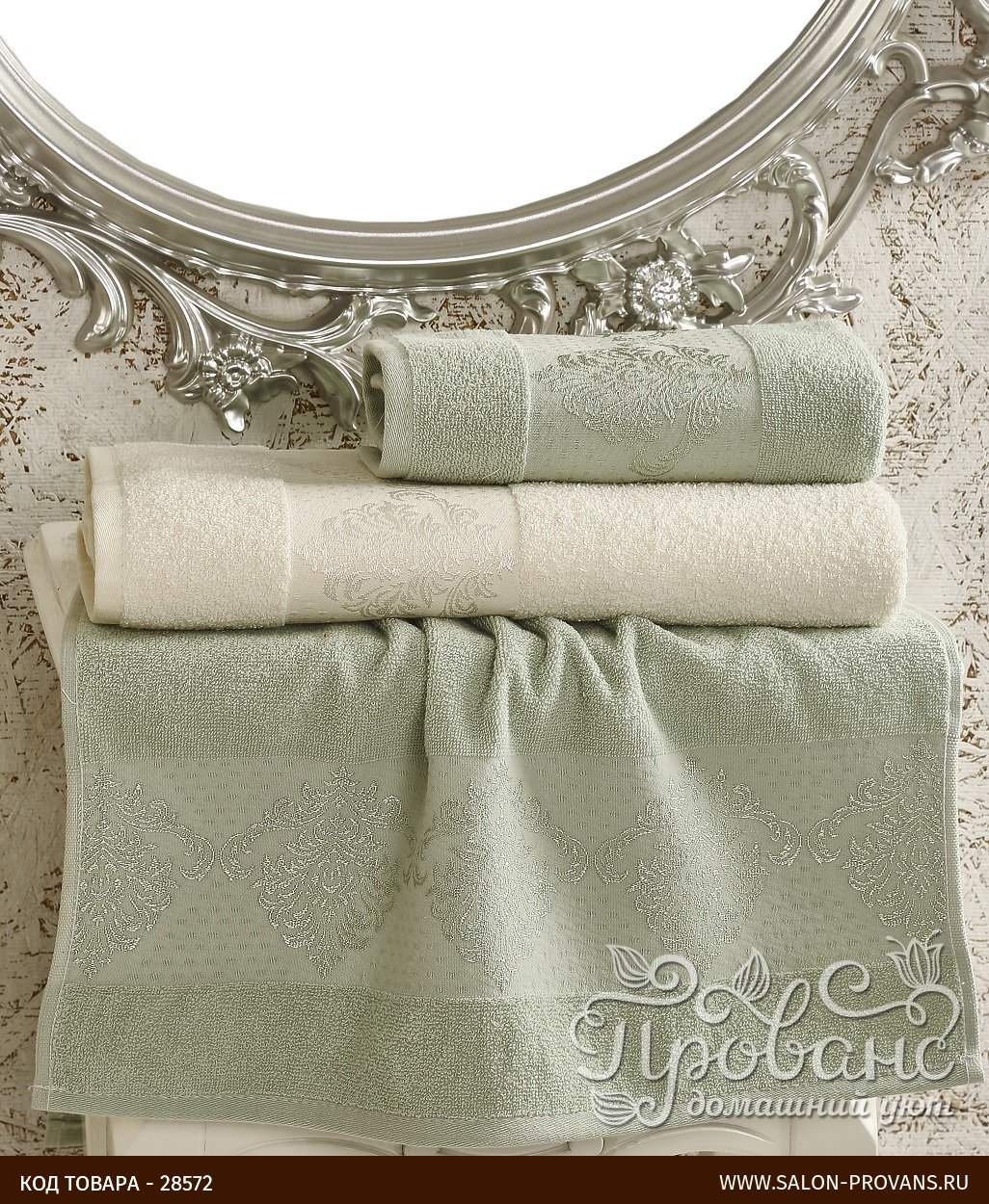 Набор полотенец банных Karna DORA 3 пр. махра хлопок кремовый+зелёный 50х90 2 шт. 70х140