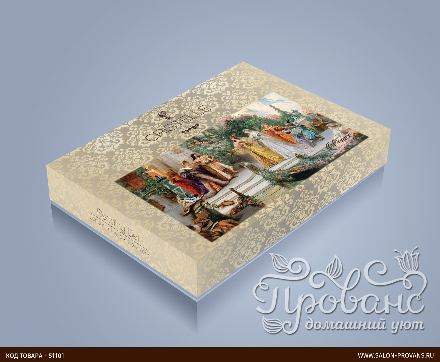 Роскошный жаккардовый комплект постельного белья из коллекции VENICE от российского бренда Cristelle. Части комплекта, соприкасающиеся с телом, изготовлены из 100% хлопкового сатина. Внешняя сторона пододеяльника и наволочек изготовлены из жаккардового шёлка (65% хлопок, 35% вискоза). Комплект упакован в фирменную подарочную картонну коробку и бумажный пакет.