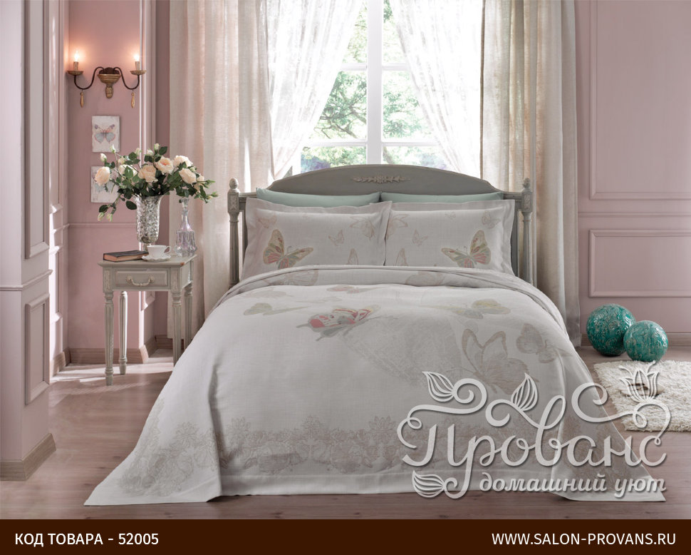 Нежное жаккардовое покрывало FARFALLA VENTO от турецкого производителя Tivolyo Home гармонично дополнит интерьер вашей спальни. В комплекте с покрывалом идут наволочки с ушками в том же дизайне. Упаковка - подарочная картонная коробка.