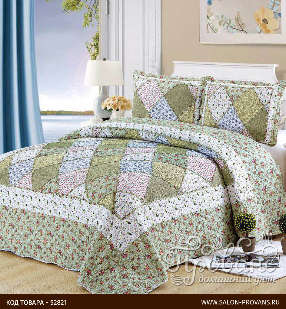 Стёганое покрывало от российского бренда Tango с имитацией лоскутной техники пэчворк. Покрывало изготовлено из 100% хлопкового сатина средней плотности. Упаковка - ПВХ сумочка на молнии.