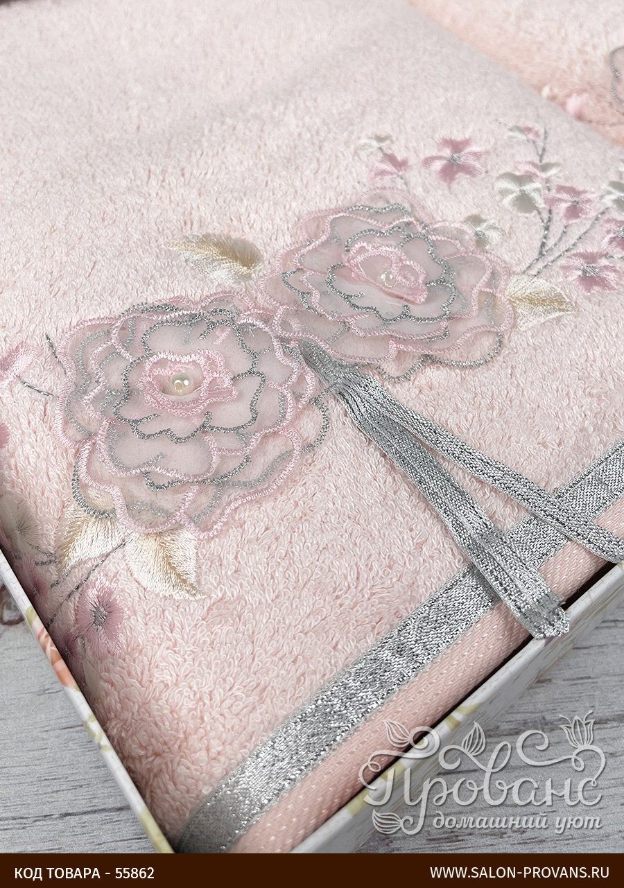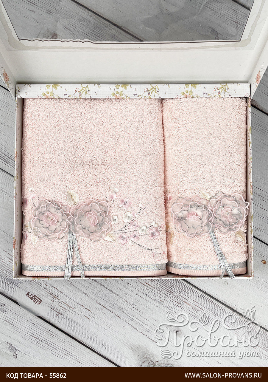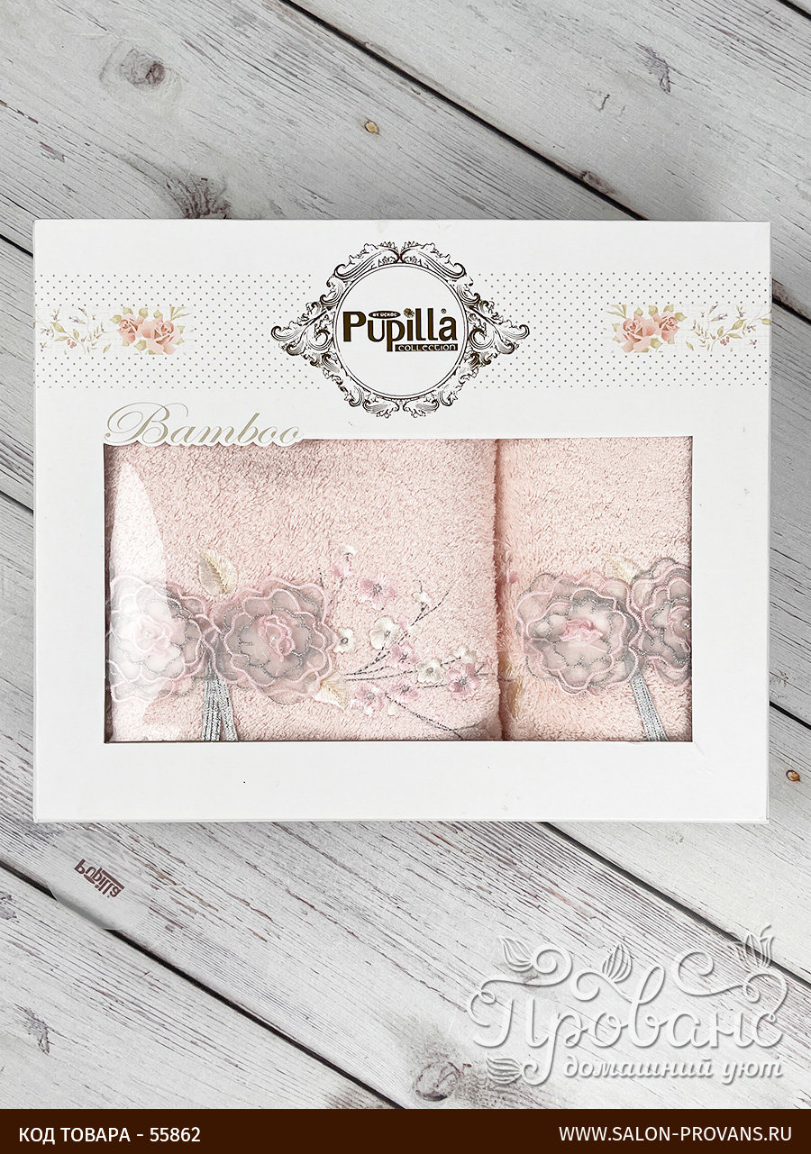 Набор полотенец для ванной в подарочной упаковке 2 пр. Pupilla ROSE LINDA бамбуковая махра V2