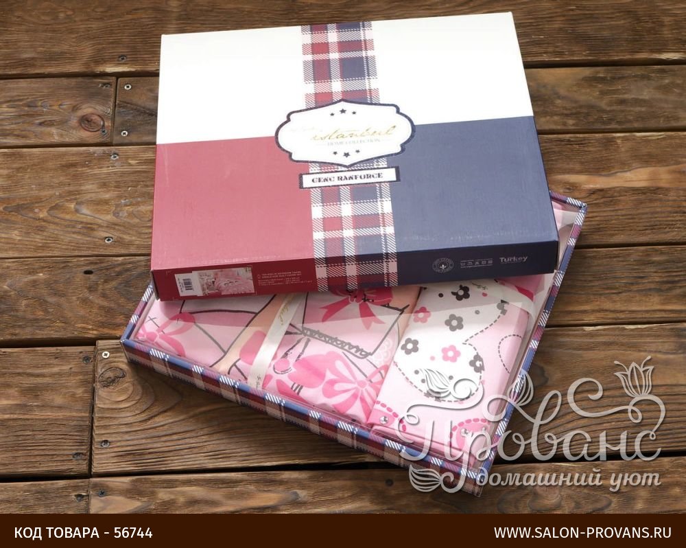 Постельное белье упаковано в фирменную подарочную картонную коробку.