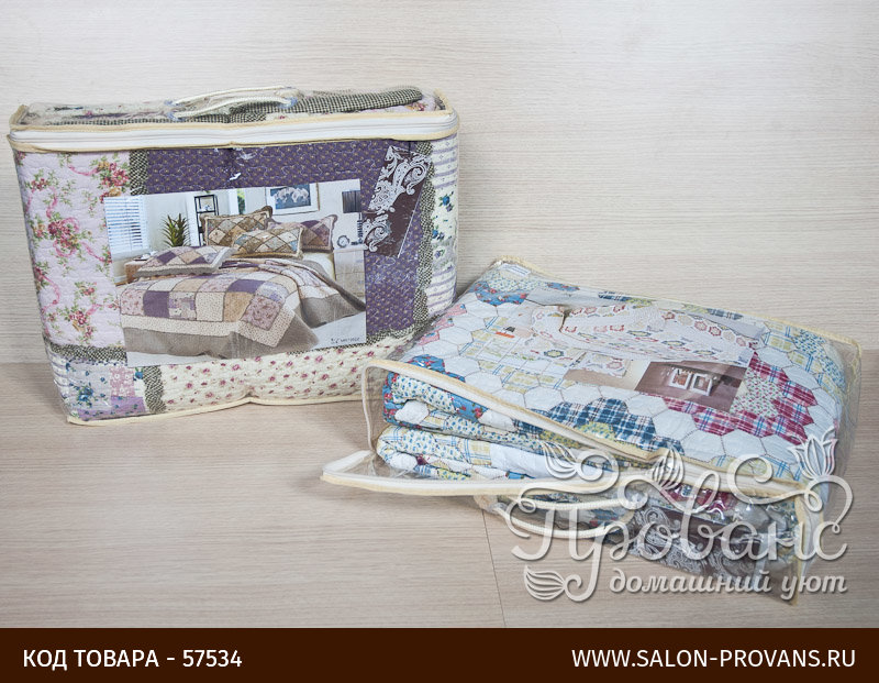 Покрывало, выполненное в технике Patchwork (Пэчворк) от российского бренда Tango. Ткань сшита из кусочков 100% хлопковой ткани с разным принтом. Ткань стёганая, с тонким слоем наполнителя из синтепона. Упаковка — ПВХ сумка с ручками.