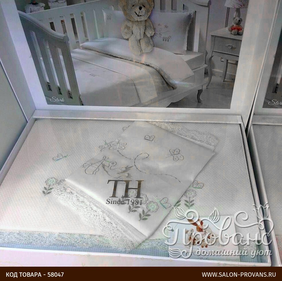 Постельное белье для новорожденных с пледом-пике Tivolyo Home STORK BEBE хлопковый сатин делюкс голубой