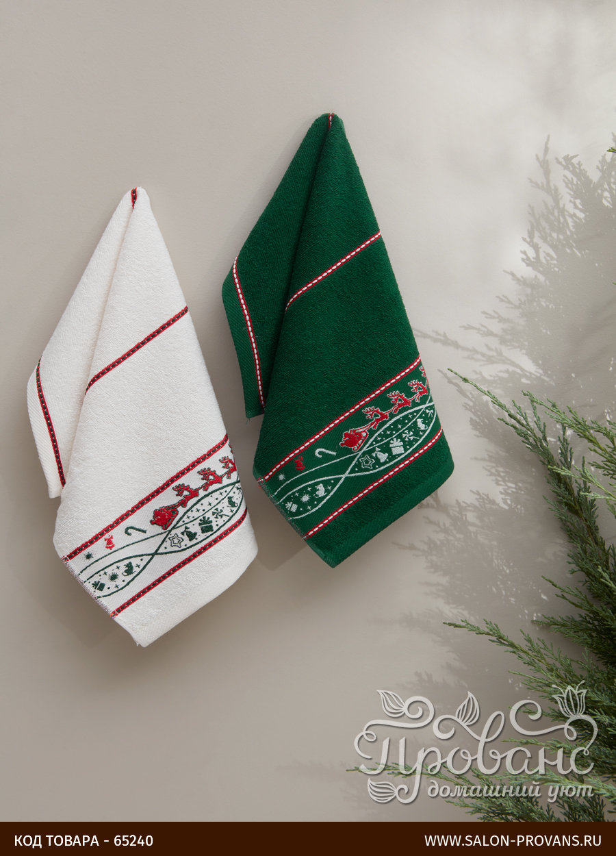 Новогодний подарочный набор из двух кухонных полотенец из коллекции CHRISTMAS от турецкого бренда Karna. Полотенца изготовлены из 100% хлопковой махры средней плотности, отлично впитывают влагу и легко стираются. Упаковка - подарочная картонная коробочка.